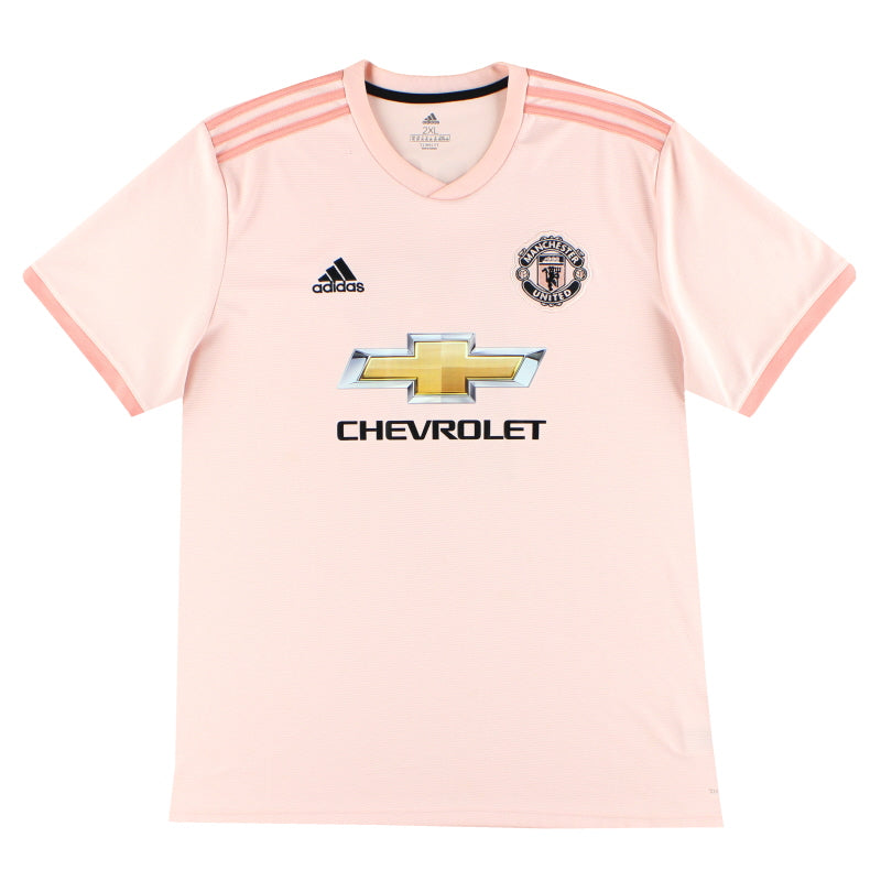 Pink away shirt as worn when Manchester United got off to a poor start in the Premier League, leading to the sacking of Jose Mourinho with club legend Ole Gunnar Solskjaer replacing him as manager. Solskjaer led Manchester United to 6th place finish in the Premier League and also saw the club knocked out in the quarter finals of the Champions League after losing 4-0 on aggregate against Barcelona.