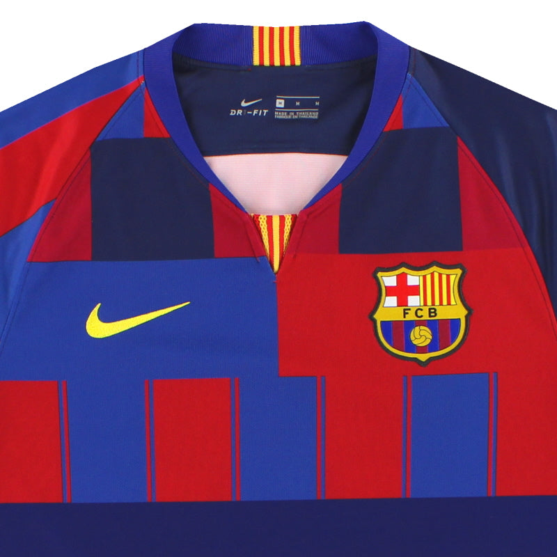 So many of Europe's top sides' sport iconic football kits that are recognised throughout the football world and Barcelona's red and blue broad stripes are no exception. The origins of the strip, first worn in 1900, a year after the club's formation, are unclear although the most popular thinking is that it was the decision of the team's founder Joan Gamper who simply borrowed the colours of Swiss side FC Basel or possibly his home town team Excelsior Zurich. Barca's red and blue shirts are worn with blue socks and shorts - although originally white pairs were worn, followed later by black.  Blue shorts didn't become the norm at the Nou Camp until the 1920s.  The most famous association connected with Barca's kit though is the fact that until very recently the club shirt was 'unspoilt' by commercialism and was bereft of a sponsors' logo. That isn't to say that an additional logo, other than the manufacturers', has never appeared on the club jerseys though as in 2006 the side agreed a five- year deal to promote children's charity UNICEF on their shirts. And from 2011 the club's honourable stance on commercial sponsorship ends as the Qatar Foundation will become the first paying sponsor to feature on the red and blue shirts in a deal rumoured to be the largest in football history.  A manufacturer's logo first appeared on the Barca shirt in the early 80s; that of Spanish sportswear company Meyba. 10 years later Kappa took over the contract and in 1998 Nike signed a deal to supply the kit and have remained with the club ever since.  Away from the Nou Camp the side have never been shy in wearing a rich array of change strips including designs in yellow (for example the memorable 70s 'sash' strip), pale blue and orange. But Barca's traditional home colours are so precious to the club that they nearly always play a very prominent part on the change strips. Click here to Sell your old Barcelona Shirts