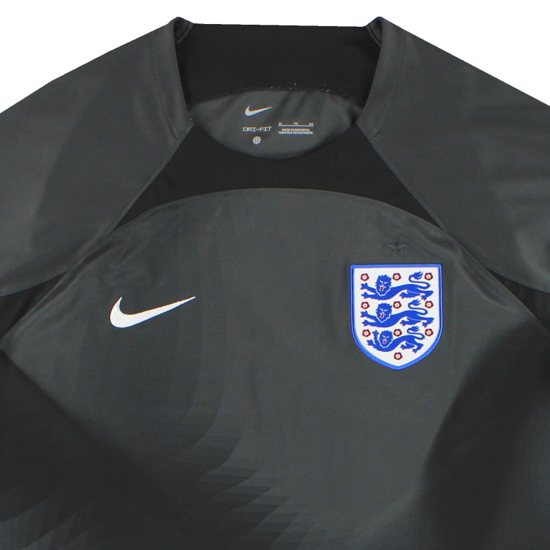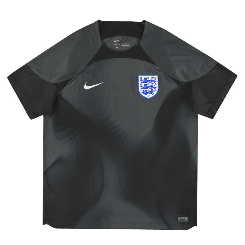 Goalkeeper shirt as worn when England were competing at the 2022 World Cup in Qatar with the team looking to build on their final appearance at the 2020 European Championship. The team made it through the group stage as winners after finishing ahead of the USA, Iran and Wales, but were knocked out in the quarter finals of the competition after losing 2-1 against France with Harry Kane missing a penalty towards the end of the game.