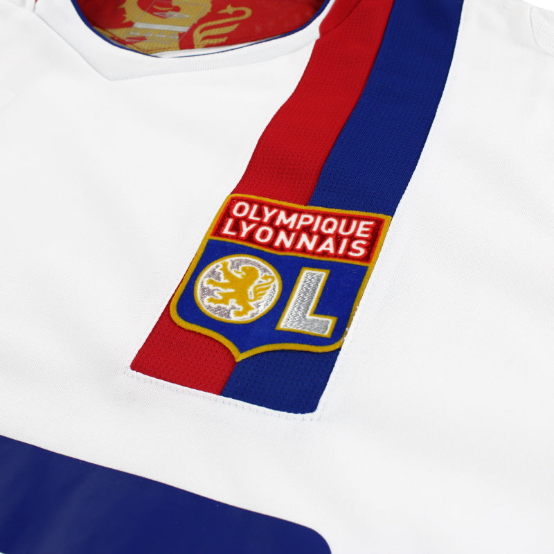 Details - Home shirt as worn when Lyon finished as champions of Ligue 1, finishing 17 points ahead of second placed Marseille, and were knokced out in the last 16 of the Coupe de France, losing 2-1 against Marseille. Also worn when Lyon made it to the final fo the Coupe de la Ligue, losing 1-0 against Bordeaux, and were knocked out in the last 16 of the Champions League, losing 2-0 on aggregate against Roma.