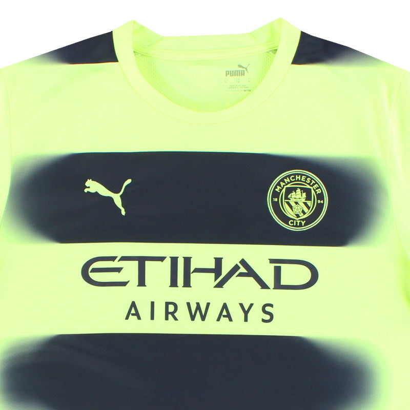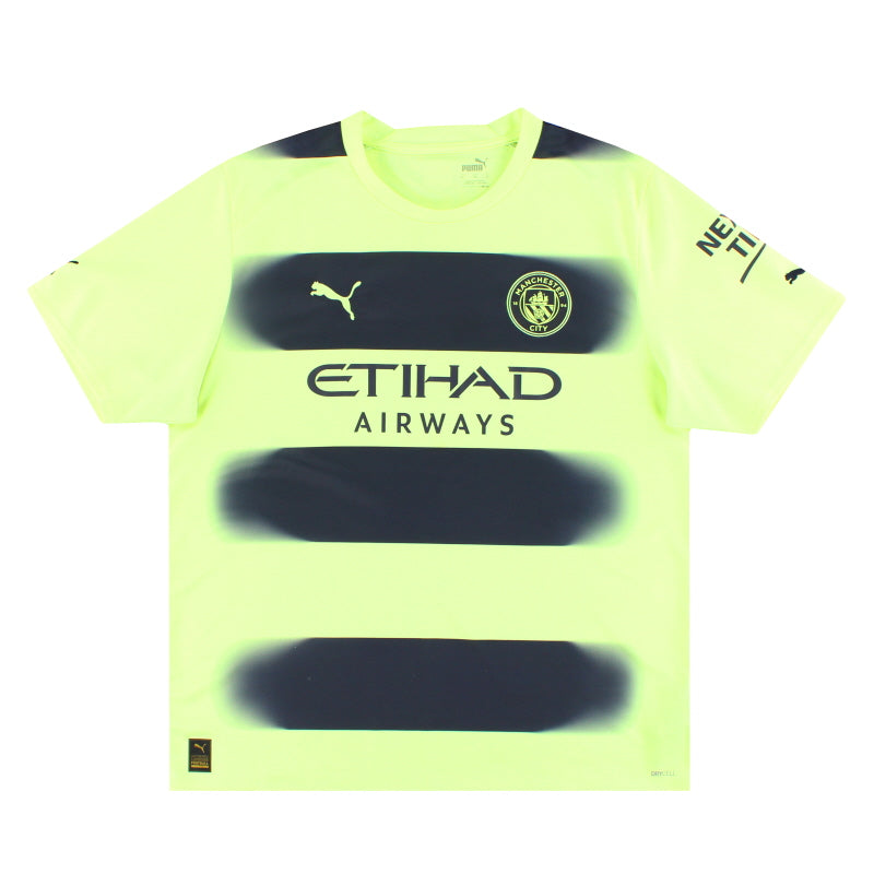 Third shirt as worn by Manchester City as Pep Guardiola and his side claimed the Treble, becoming the first side in 24 years to do so and only the second ever to achieve the feat. During the summer the club brought in Erling Haaland from Borussia Dortmund for over £50m with Haaland on course to break the Premier League single season goal record having scored 26 goals in the clubs first 23 games in the Premier League.