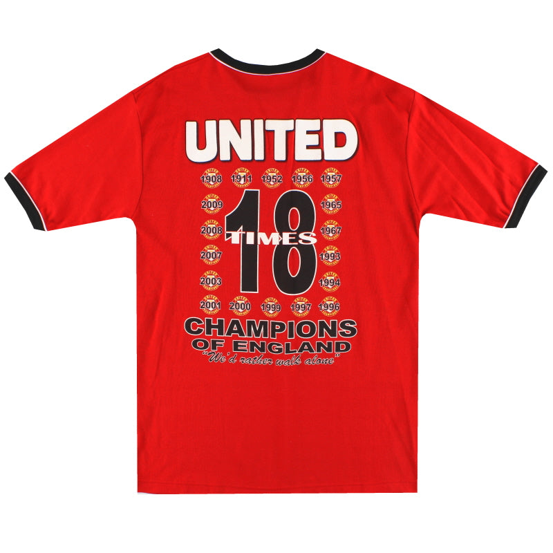 Details - 18 times winners tee released to mark an astonishing achievement of 18 League tittle wins since1908. Also in this season Manchester United were competing in the 2008 final, winning the competition for the third time in their history, beating Chelsea 6-5 on penalties after the tie finished 1-1 after extra time.
