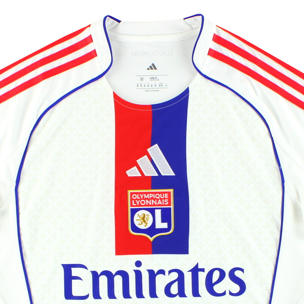 Home shirt Adorned with a special back-neck sign-off and a subtle mosaic-inspired pattern, this adidas Olympique Lyonnais home jersey pays homage to the city’s rich Roman history