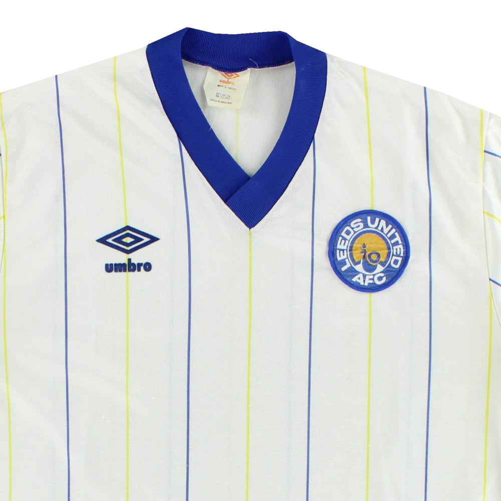 Home shirt as worn when Leeds United were relegated to the Second Division in the 1981-82 season, finishing 20th in the First Division, with Leeds failing to earn promotion back to the First Division in the next two seasons, finishing 8th and 10th in the Second Division in respective seasons.
