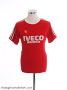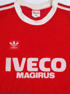 Details - Home shirt as worn when Bayern Munich finished as champions of the Bundesliga in the 1980-81 season before finishing 3rd in the next season and won the 1981-82 DFB-Pokal, beating Nurnberg 4-2 in the final. Also worn when Bayern made it to the final of the 1981-82 European Cup, losing 1-0 against Aston Villa with Peter Withe scoring the only goal of the game.