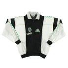 Details - Track jacket as worn in Luigi Maifredi's first and only season as Juventus boss as he led the club to its worst finish since the 1961-62 season, finishing 7th in the table. This was despite the signing of Roberto Baggio from Fiorentina for a world record fee. In Europe the club did make it to the European Cup Winners' Cup semi finals, losing 3-2 on aggregate against Barcelona.