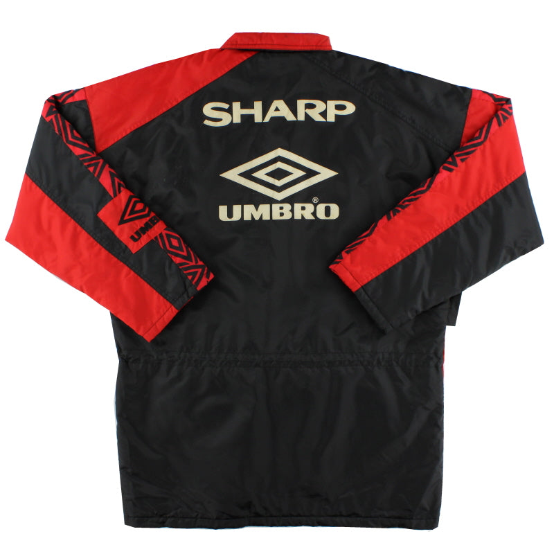 Details - Bench coat as worn when Manchester United were crowned champions in the inaugural Premier League season, finishing 10 points ahead of second placed Aston Villa, and were knocked out in the fifth round of the FA Cup, losing 2-1 against Sheffield United. Also worn when Manchester United were knocked out in the first round of the UEFA Cup, losing 4-3 on penalties against Torpedo Moscow after the tie finished 0-0 on aggregate.