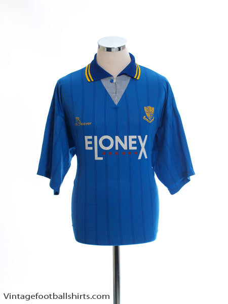 Details - Home shirt as worn when Southend United finished 18th and 15th in the First Division in respective seasons and were knocked out in the last 16 of the 1992-93 FA Cup, losing 2-0 against Sheffield Wednesday.