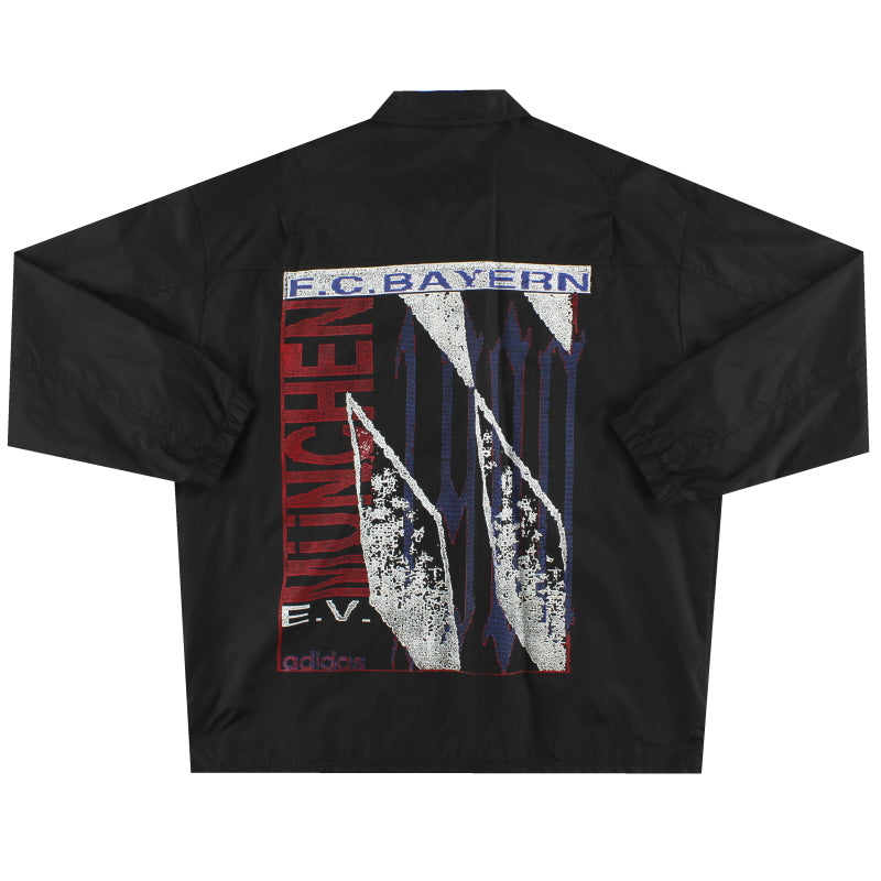Track jacket as worn when Bayern Munich finished as champions of the Bundesliga in the 1993-94 season before failing to defend their title in the next season after finishing 6th, 6 points behind champions Borussia Dortmund. Also worn when Bayern Munich made it to the semi finals of the 1994-95 Champions League, losing 5-2 on aggregate against eventual winners Ajax.