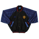 Details - Umbro bomber jacket as worn by the staff and players when Manchester United as runners up in the Premier League, finishing 1 point behind champions Blackburn Rovers, and also finished as runners up in the FA Cup after losing 1-0 in the final against Everton with Paul Rideout scoring the winning goal in the first half.
