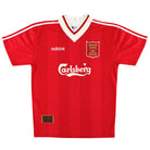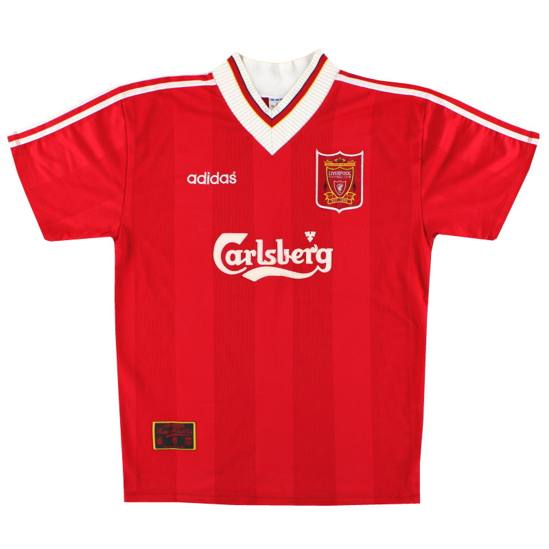 Home shirt as worn when Liverpool finished 3rd in the Premiership under manager Roy Evans, and was worn in the epic game against Newcastle at Anfield ending in a 4-3 victory. Also worn when Liverpool made it to the final of the FA Cup, losing 1-0 against Manchester United with Eric Cantona scoring the winner in the 85th minute.