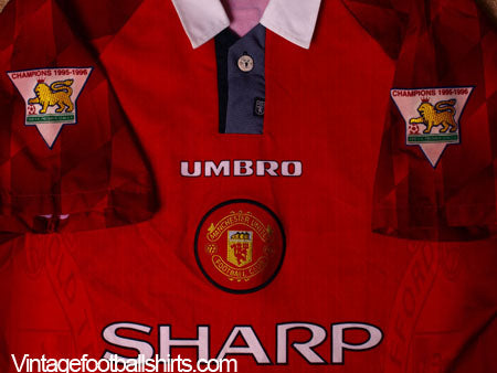 Details - Classic home shirt as worn when the side won the Premier League with 75 points and reached the Semi-Finals of the Champions League in 96-97 but lost 2-0 on aggregate to German outfit, Borussia Dortmund, new signing Ole Gunner Solskjaer was the clubs top goalscorer on 19, and a 22yr old David Beckham won the PFA Young Player of the Year Award. 97-98 proved to be a very unsuccessful for the team, winning nothing after being piped to the title by Arsenal
