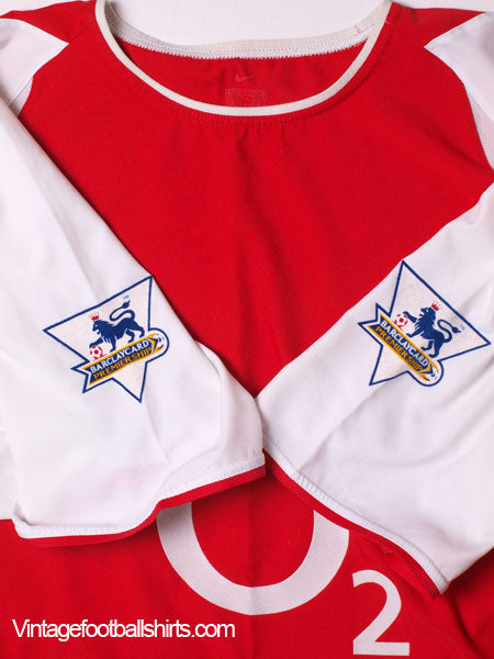 Details - Home shirt as worn when Arsenal finished as runners up in the Premier League and won the 2003 FA Cup final, beating Southampton 1-0 with Robert Pires scoring the only goal in the game. Arsenal then went on to win the Premier League in the next season after finishing the season with an unbeaten record for the first time in the top tier of English football since Preston North End in the 1888-89 season earning the nickname "The Invincibles".