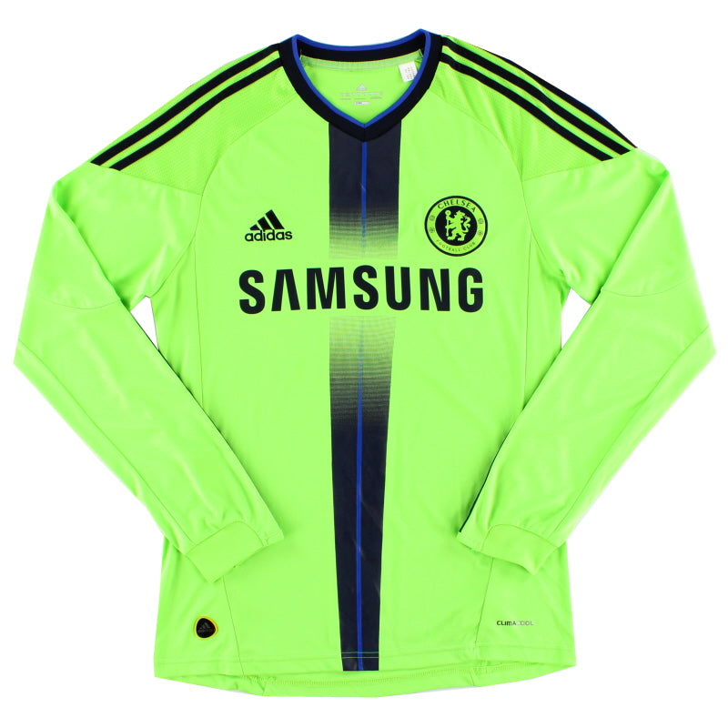 Details - Third shirt as worn when Chelsea were looking to repeat the success of the previous season, however, they failed to retain their Premier League title, finishing 9 points behind champions Manchester United, and were knocked out in the fourth round of the FA Cup, losing on penalties against Everton. They were also knocked out in the quarter finals of the Champions League and at the end of the season, manager Carlo Ancelotti was sacked.