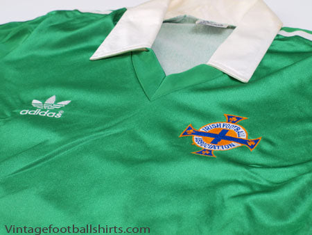 Details - Home shirt believed to have been worn by or issued to #13 of Northern Ireland during the period when Northern Ireland competed in qualification for the 1982 World Cup. Northern Ireland successfully qualified for the 1982 World Cup, finishing as runners up in their qualification group.