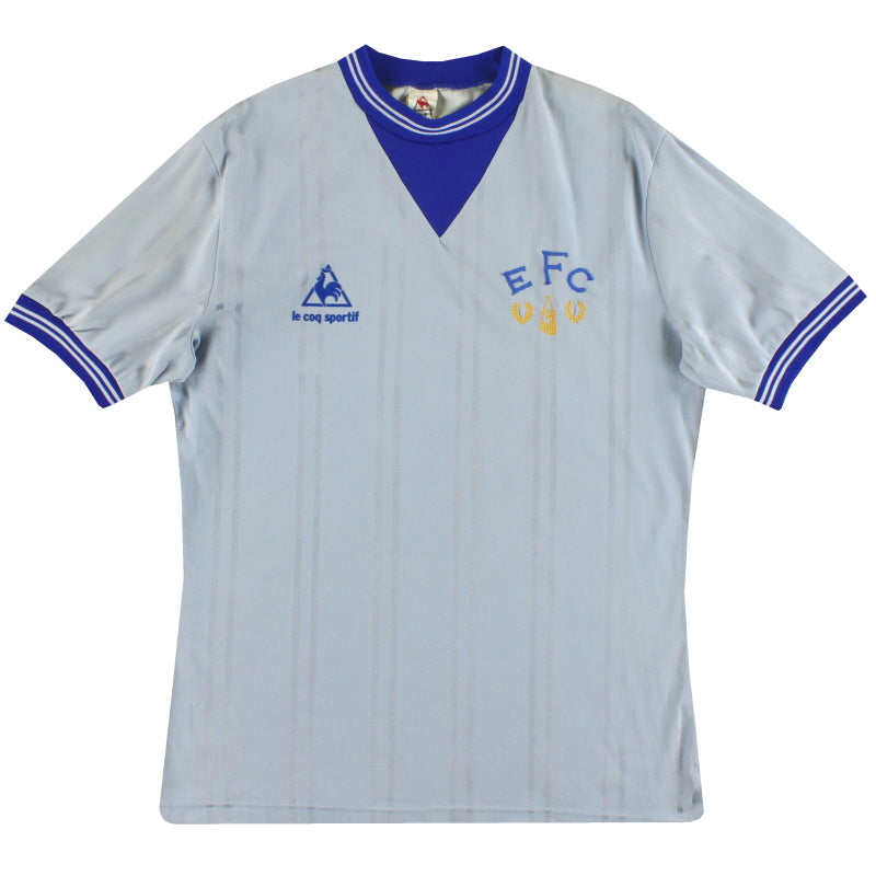 Shirt Details - Away shirt as worn when Everton finished 7th in the First Division in the 1983-84 season before winning the First Division title in the next season under Howard Kendall, finishing 13 points clear of second placed Liverpool. Also worn when Everton made it to the FA Cup final in back to back seasons, beating Watford 2-0 in the final in the 1983-84 season before failing to retain their title in the next season, losing 1-0 against Manchester United.