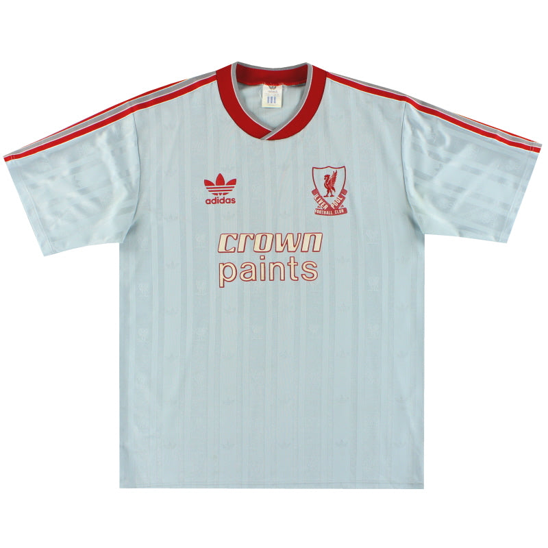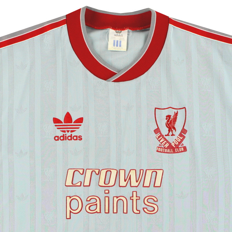 Details - Away shirt as worn when Liverpool finished as champions of the First Division, finishing 9 points clear of second placed Manchester United, and made it to the final of the FA Cup, losing 1-0 against Wimbledon with Lawrie Sanchez scoring the only goal of the game.