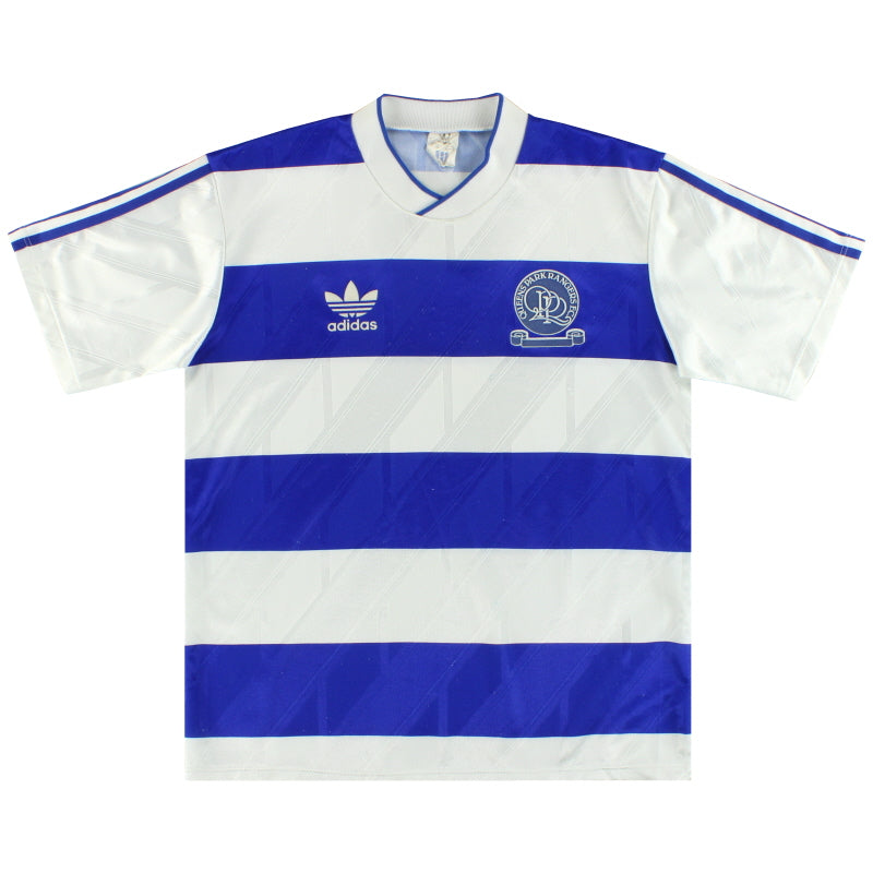Details - Rare home shirt as worn when Queens Park Rangers finished 5th and 9th in the First Division in respective seasons and also made it to the quarter finals of the 1988-89 League Cup, losing 5-2 agaionst Nottingham Forest.