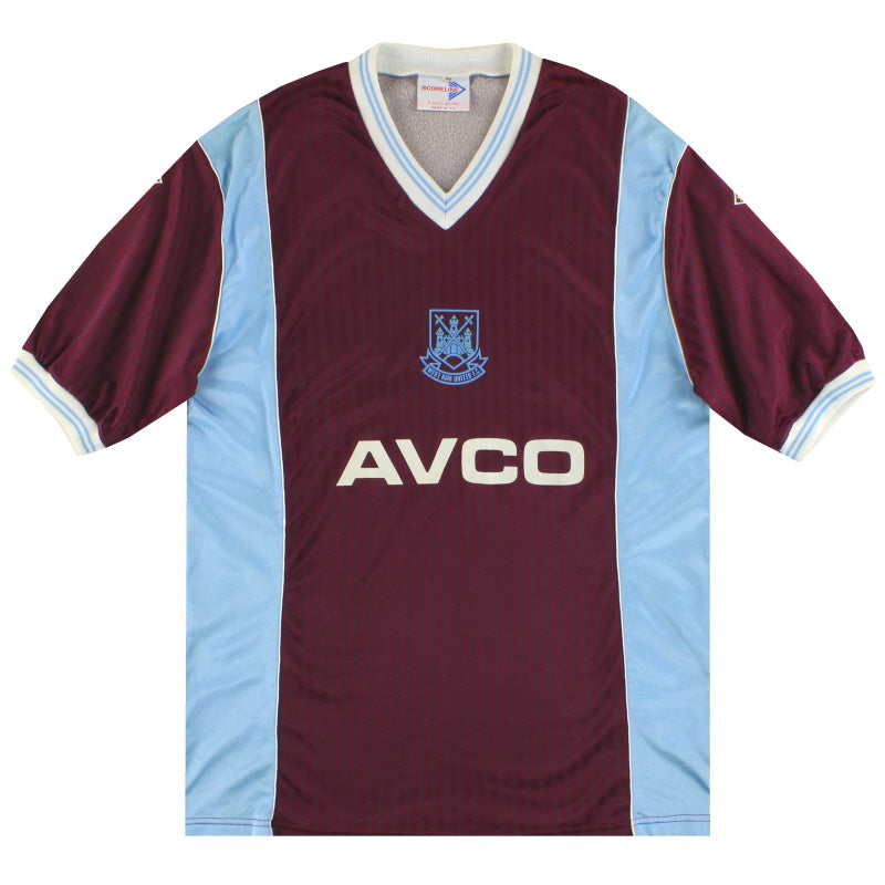 Details - Home shirt as worn when West Ham just avoided relegation from the First Division in the 1987-88 season, finishing in 16th place, before finishing 19th in the next season were relegated to the second tier of English football with manager John Lyall being sacked after 15 years in charge.