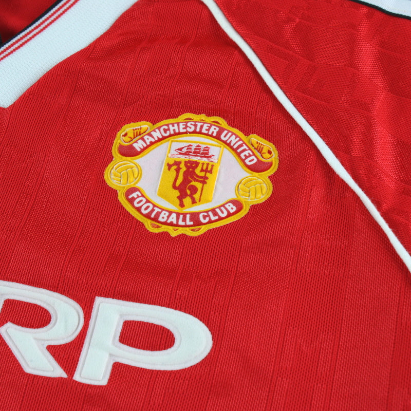 Details - Home shirt as worn when Manchester United finished 11th and 13th respectively in the First Division and won the 1990 FA Cup final, beating Crystal Palace 1-0 in a replay after the original tie finished 3-3 with Lee Martin scoring the winner for Manchester United.