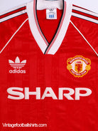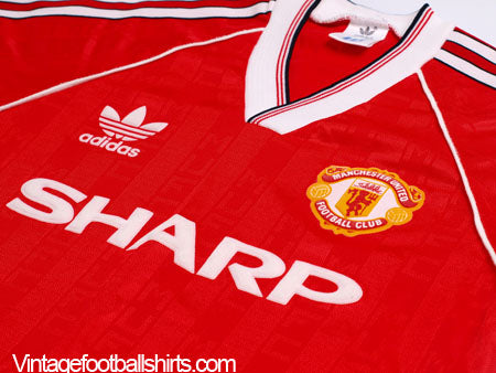 Details - Home shirt as worn when Manchester United finished 11th and 13th respectively in the First Division and won the 1990 FA Cup final, beating Crystal Palace 1-0 in a replay after the original tie finished 3-3 with Lee Martin scoring the winner for Manchester United.