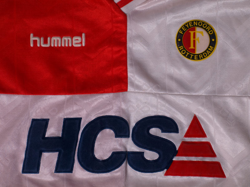Details - Home shirt as worn when Feyenoord finished 11th and 8th respectively in the Eredivisie and won the 1990-91 KNVB Cup, beating BVV Den Bosch 1-0 in the final. Also worn when Feyenoord were knocked out in the first round of the 1989-90 UEFA Cup, losing 3-2 on aggregate against VfB Stuttgart.