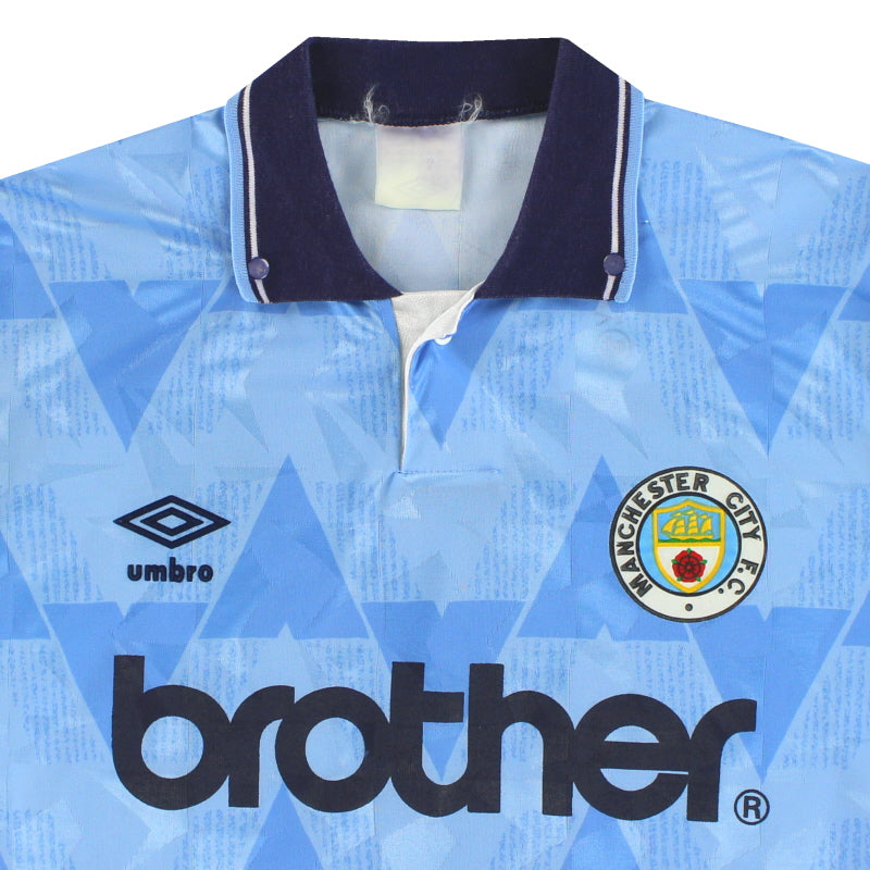 Details - Home shirt as worn when Manchester City finished 14th and 5th respectively in the First Division and were knocked out in the fifth round of the 1990-91 FA Cup, losing 1-0 against Notts County.