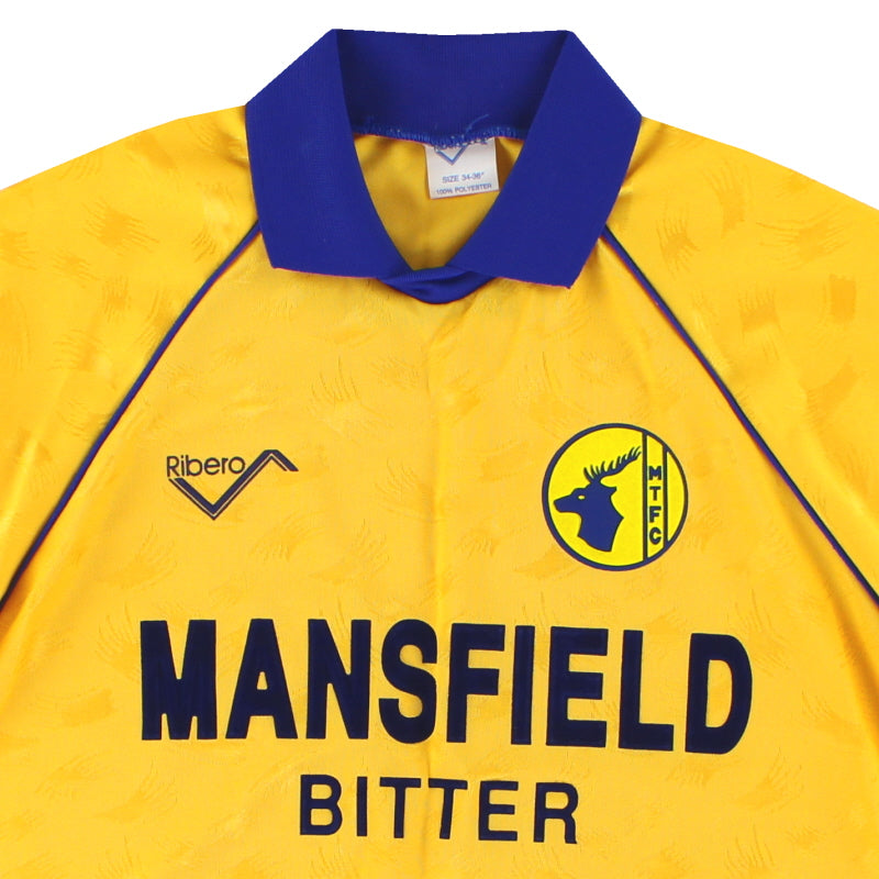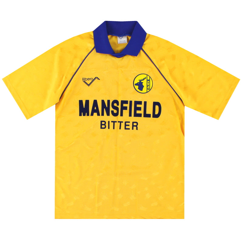 Details - Home shirt as worn when Mansfield Town were relegated from the Third Division after finishing bottom of the table, 8 points away from safety.