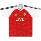Details - Home shirt as worn when Arsenal won the First Division title in 1990-91 despite being deducted 2 points earlier in the season after a brawl in a game against Manchester United. Arsenal failed to defend their title in the next season after finishing 4th in the First Division, 10 points behind champions Leeds United.