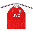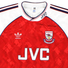 Home shirt as worn when Arsenal won the First Division title in 1990-91 despite being deducted 2 points earlier in the season after a brawl in a game against Manchester United. Arsenal failed to defend their title in the next season after finishing 4th in the First Division, 10 points behind champions Leeds United.