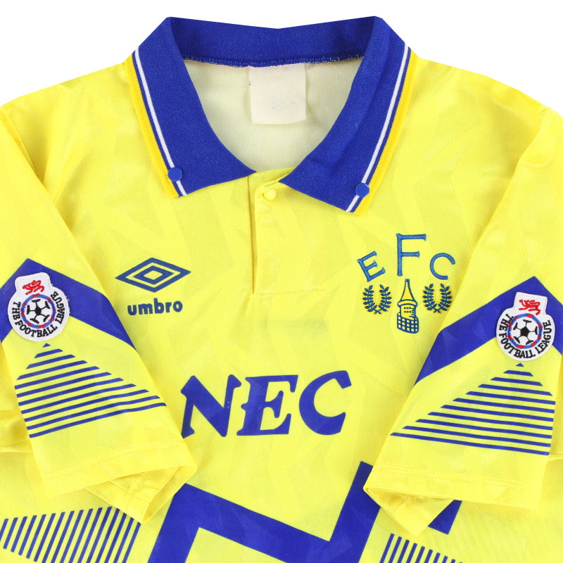 Details - Classic retro design away shirt as worn in the early 90's when Everton finished 9th and 12th respectively in the First Division and made it to the Quarter Finals of the 1990-91 FA Cup losing 2-1 against West Ham United