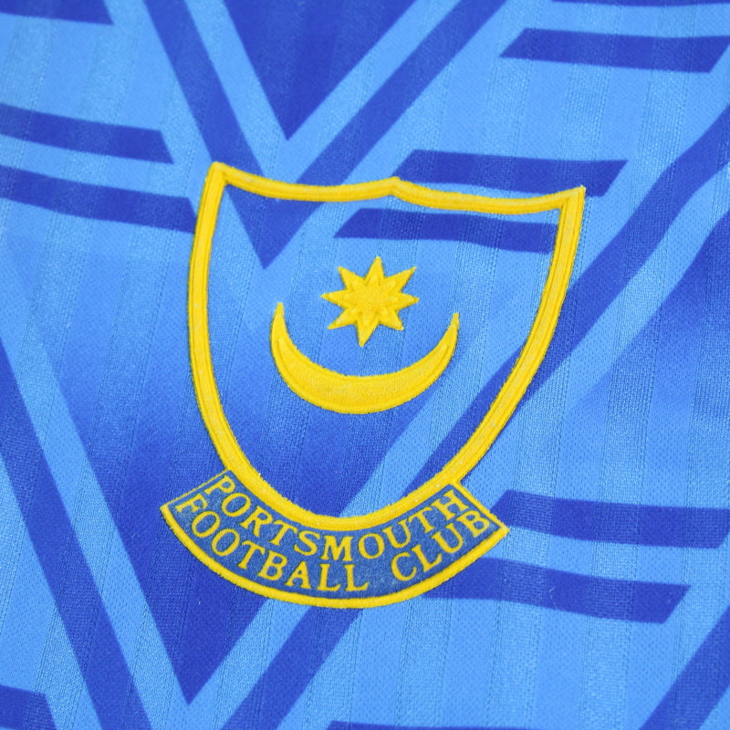Details - Home shirt as worn when Portsmouth finished 8th in the Second Division in the 1991-92 season before narrowly missing out on promotion to the Premier League in the next season, finishing 3rd in the First Division. Also worn when Portsmouth made it to the semi finals of the 1991-92 FA Cup, losing 3-1 on penalties against Liverpool after the replay finished 0-0.