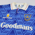 Details - Home shirt as worn when Portsmouth finished 8th in the Second Division in the 1991-92 season before narrowly missing out on promotion to the Premier League in the next season, finishing 3rd in the First Division. Also worn when Portsmouth made it to the semi finals of the 1991-92 FA Cup, losing 3-1 on penalties against Liverpool after the replay finished 0-0.