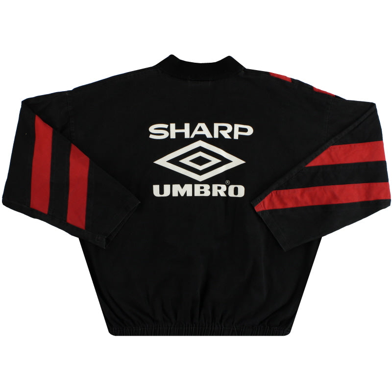 Details - Drill top as worn when Manchester United were crowned champions in the inaugural Premier League season, finishing 10 points ahead of second placed Aston Villa, and were knocked out in the fifth round of the FA Cup, losing 2-1 against Sheffield United. Also worn when Manchester United were knocked out in the first round of the UEFA Cup, losing 4-3 on penalties against Torpedo Moscow after the tie finished 0-0 on aggregate.