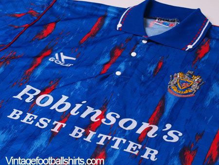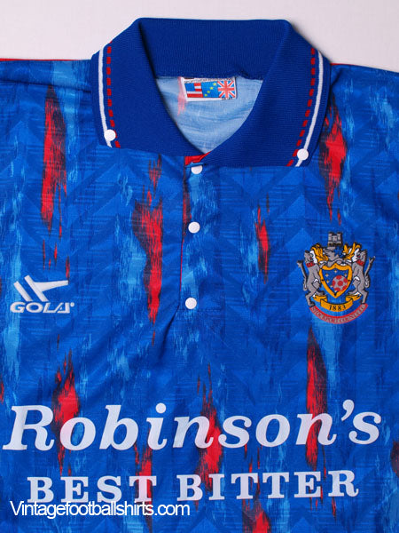 Details - Home shirt as worn when Stockport County finished 6th in the Second Division, failing to gain promotion after they lost 2-1 on aggregate against Port Vale in the play off semi finals, and made it to the final of the Football League Trophy, losing 2-1 against Port Vale