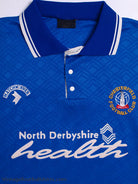 Details - Home shirt as worn when Chesterfield finished 12th and 8th respectively in the Third Division and were knocked out in the second round of the League Cup in back to back seasons, losing against Liverpool and West Ham United in respective seasons.