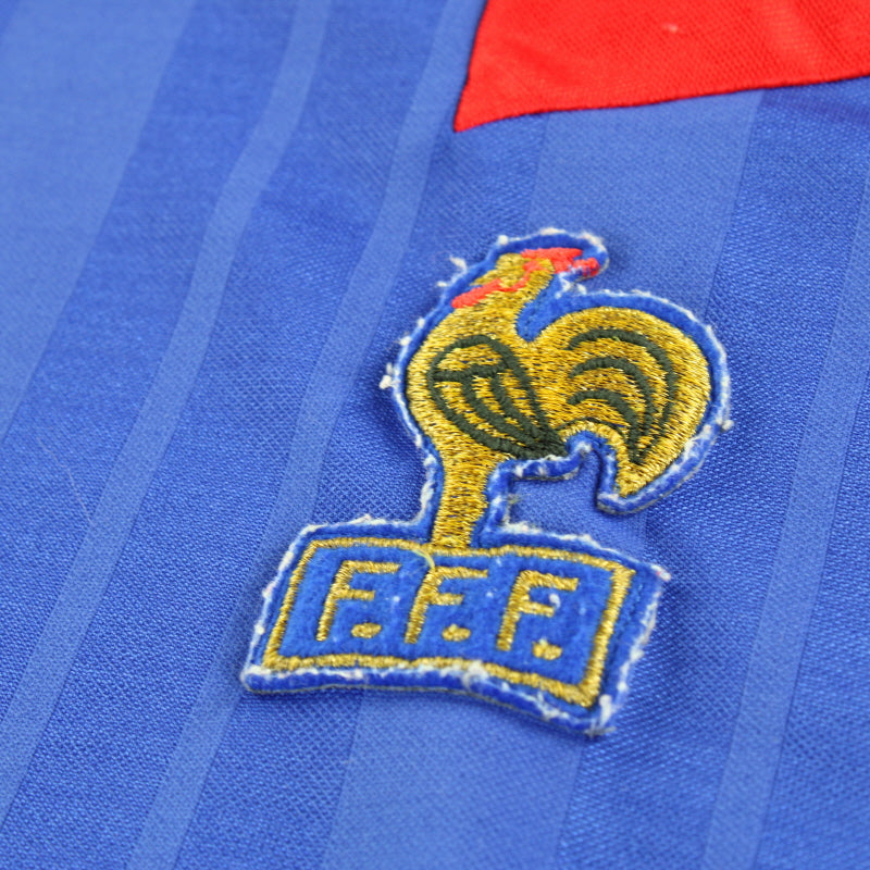 Details - Home shirt as worn when France competed in the 1992 European Championship, failing to make it out of the group stages, finishing 3rd in the group behind Sweden and Denmark, under manager Michel Platini.
