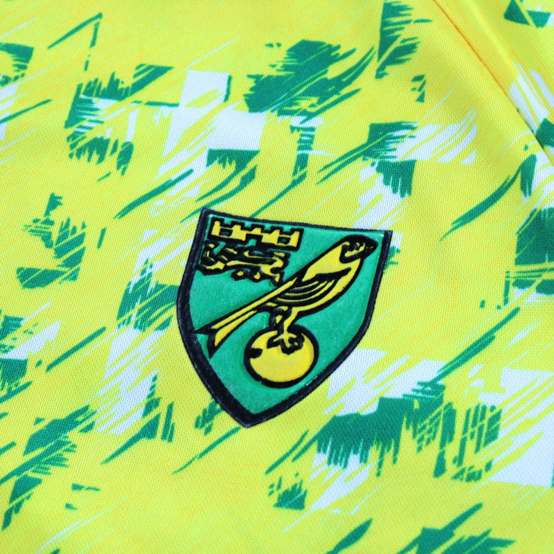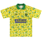 Details - Rare home shirt as worn when Norwich finished 3rd in the inaugural Premier League season, finishing 12 points behind champions Manchester United, before only managing to finish in 12th place in the next season. Also worn when Norwich City made it to the third round of the UEFA Cup in a run that included a famous 3-2 aggregate win against Bayern Munich.