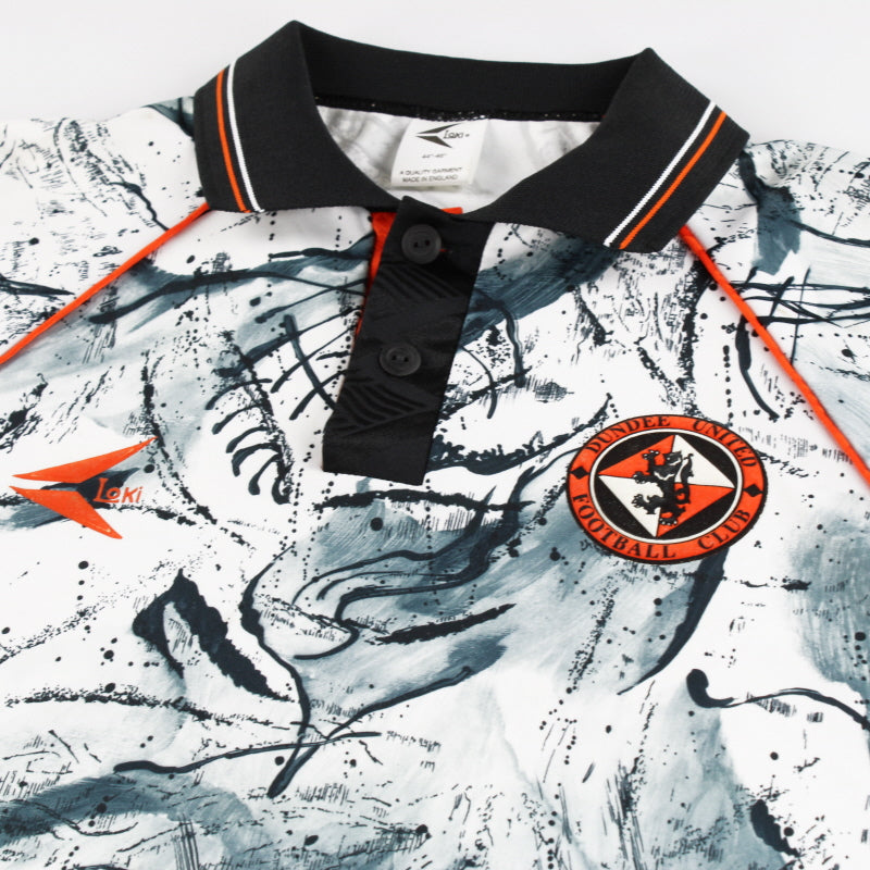 Details - Rare away shirt as worn when Dundee United finished 6th in the Scottish Premier Division and also won the Scottish Cup for the first time in their history, beating Rangers 1-0 in the final thanks to a goal from Craig Brewster. The shirt which can be described as a 'marble effect' features a black and grey swirl pattern throughout the shirt.