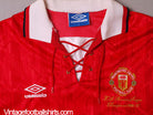 Details - Classic home shirt as worn when Manchester United led the 1993-94 Premier League for much of the season, eventually finishing as champions eight points ahead of runners-up Blackburn Rovers. They also won the FA Cup after beating Chelsea 4-0 in the final