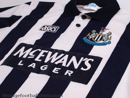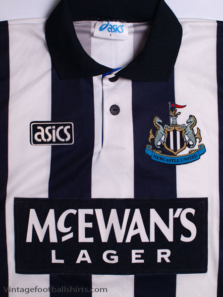 Details - Classic home shirt as worn when Newcastle United finished 3rd and 6th in the Premier League in respective seasons and were knocked out in the quarter finals of the 1994-95 FA Cup, losing 1-0 against Everton. Also worn when Newcastle United were knocked out in the second round of the 1994-95 UEFA Cup, being knocked out on away goals against Athletic Bilbao after the tie finished 3-3 on aggregate