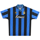 Details - Home shirt as worn when Inter Milan finished 6th in Serie A and were knocked out in the quarter finals of the Coppa Italia, losing 2-1 after extra time against Foggia. Also worn when Inter were knocked out in the first round of the UEFA Cup, losing 4-3 on penalties against Aston Villa after the tie finished 1-1 on aggregate.