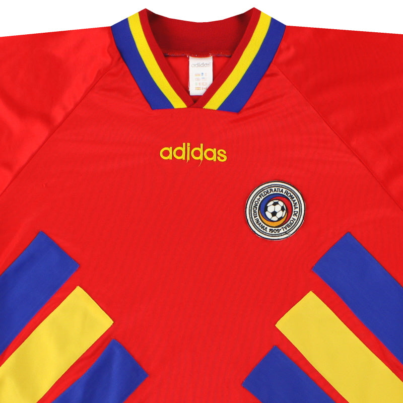 Details - Away shirt as worn when Romania were competing in the 1994 World Cup in USA. Reacing the Quarter Finals after knocking out Argentina they then took on the swiss, in which they lost out 4-1.