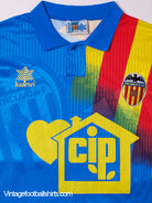 Details - Extremely rare away shirt as worn when Valencia finished 10th and 2nd respectively in La Liga and also made it to the 1994-95 Copa del Rey, losing 2-1 against Deportivo de La Coruna after play was suspended due to heavy rain on the 79th minute before play was resumed 3 days later with Deportivo scoring a 81st minute winner through Alfredo