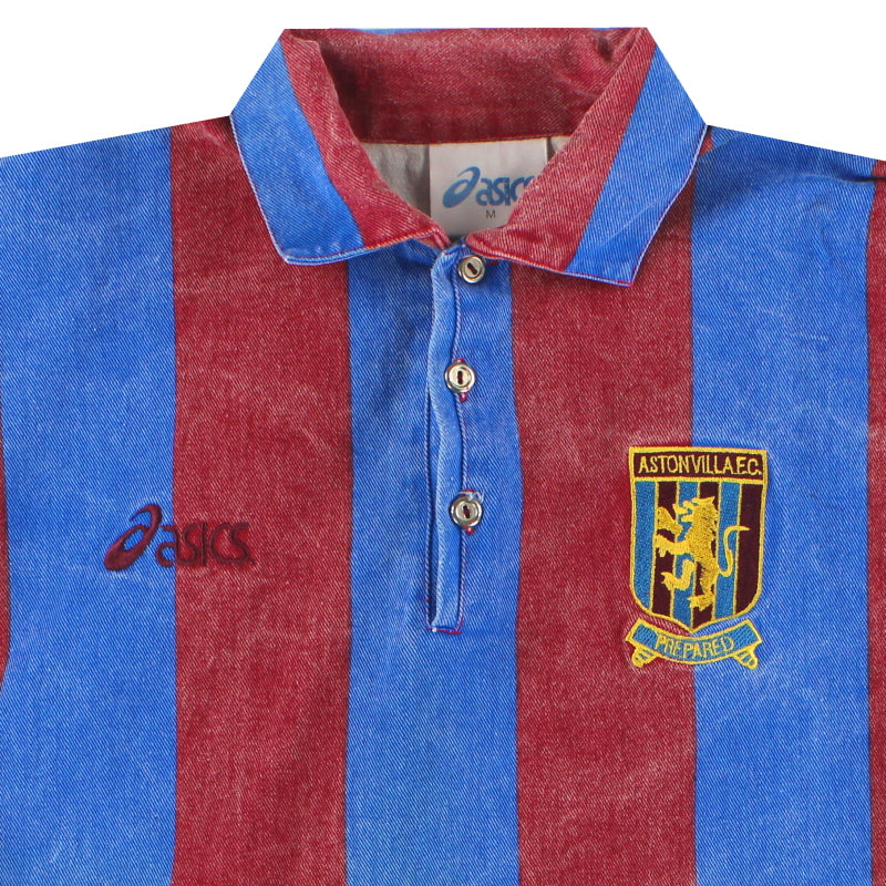 Details - Rare denim drill top as worn when Aston Villa won the 1994 League Cup final, beating Manchester United 3-1 in the final with Dalian Atkinson and Dean Saunders getting the goals for Villa with Mark Hughes scoring for Manchester United.