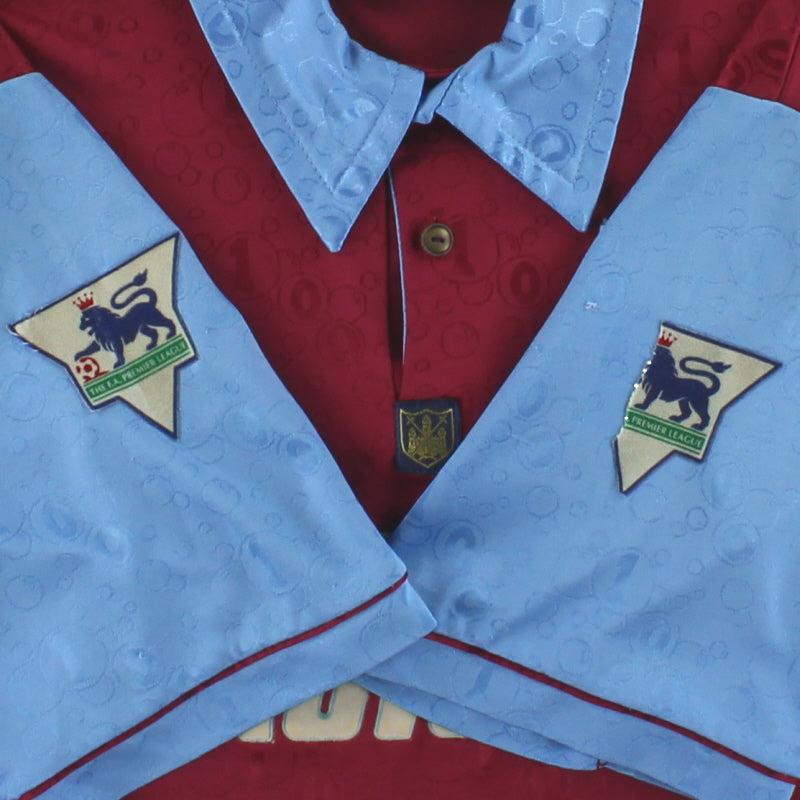 Details - Vintage design home shirt as worn when the side finished mid-table in the 1995-96 season, never really challenging for Europe, and never in danger of relegation, the following season a host of foreign signings arrived, but proved unsuccessful, survival in the Premiership was confirmed on the last day of the season.