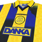 Details - Away shirt as worn in the 96-97 season when manager Joe Royle resigned in March, and was replaced by caretaker Dave Watson, finishing 15th. The following season Howard Kendall returned to the club and just avoided relegation by goal difference