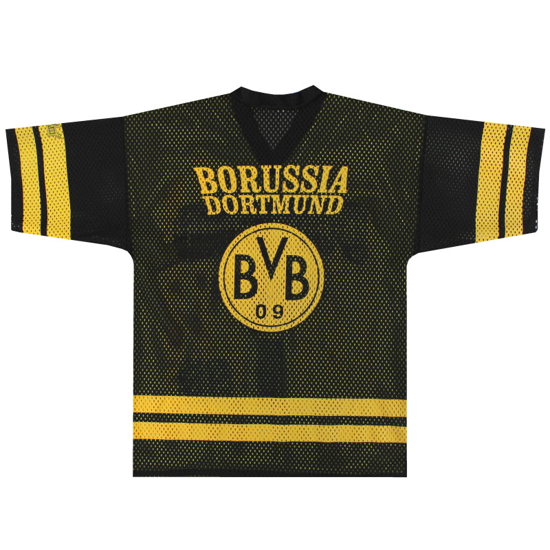 Details - NFL style Fan Club shirt released when Borussia Dortmund finished 3rd in the Bundesliga, and were knocked out in the first round of the DFB-Pokal, losing 4-3 after extra time against SG Wattenscheid 09. Also worn when Borussia Dortmund won the Champions League for the first time in their history, beating Juventus 3-1 in the final.