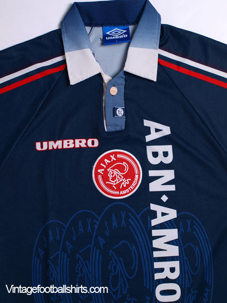 Details - Away shirt as worn when Ajax finished as champions of the Eredivisie, finishing 17 points clear of second placed PSV, and also won the KNVB Cup, beating PSV 5-0 in the final. Also worn when Ajax made it to the quarter finals of the UEFA Cup, losing 4-1 on aggregate against Spartak Moscow.