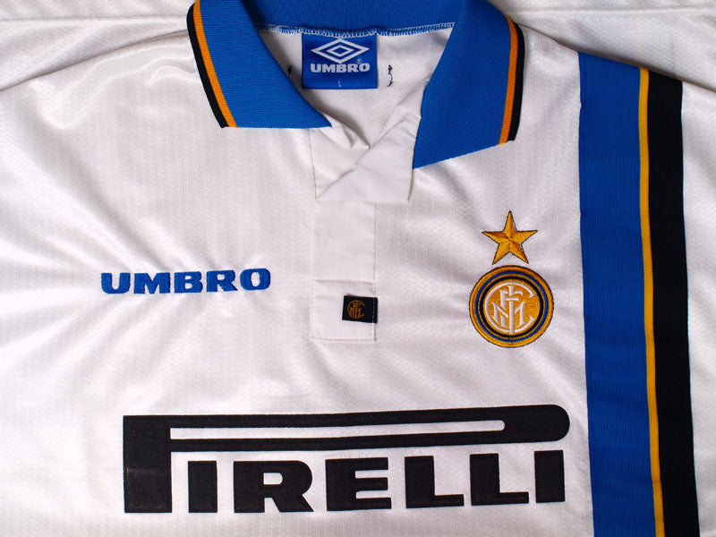 Details - Classic away shirt as worn when Internazionale pushed Juventus all the way for the Serie A title, just missing out by 1 point, under Coach Luigi Simoni, the noticeable difference to the side was the signing of world class striker, Ronaldo, who in his first season scored 34 goals in all competitions